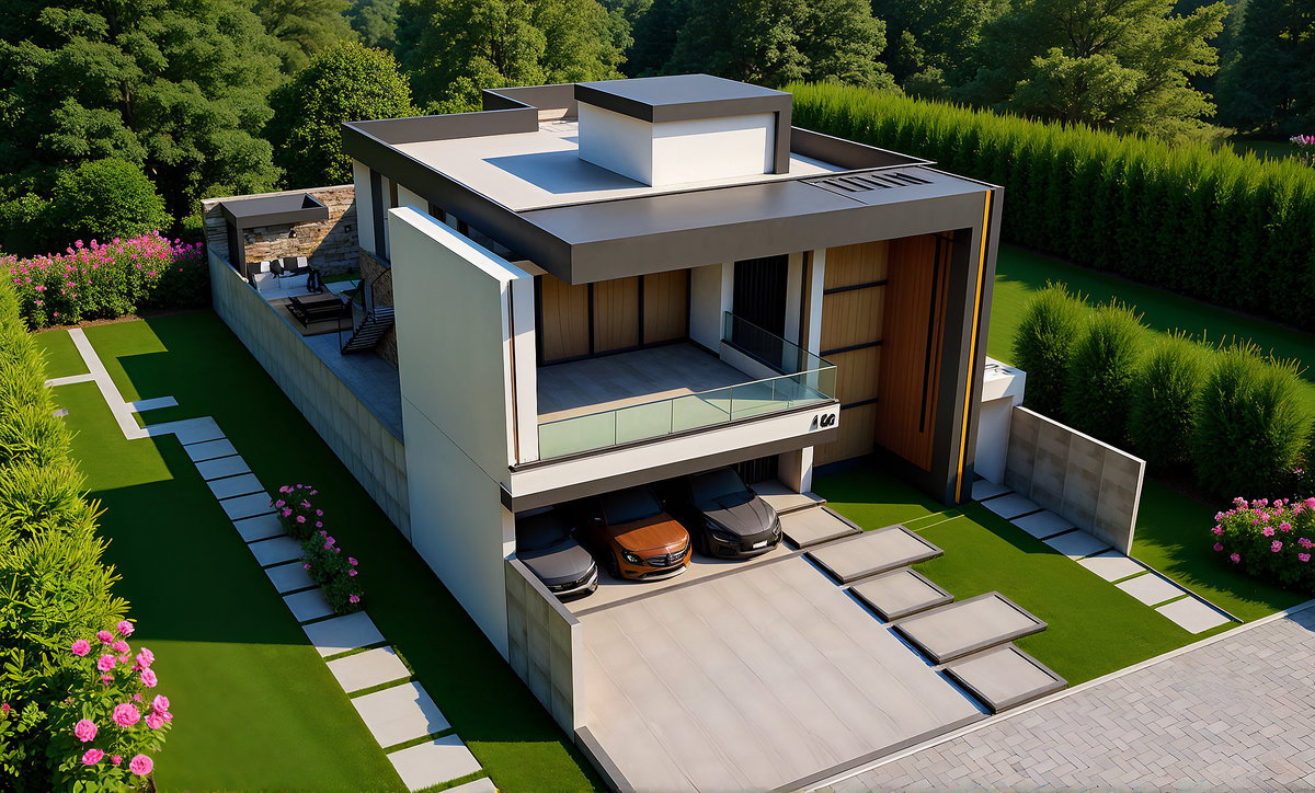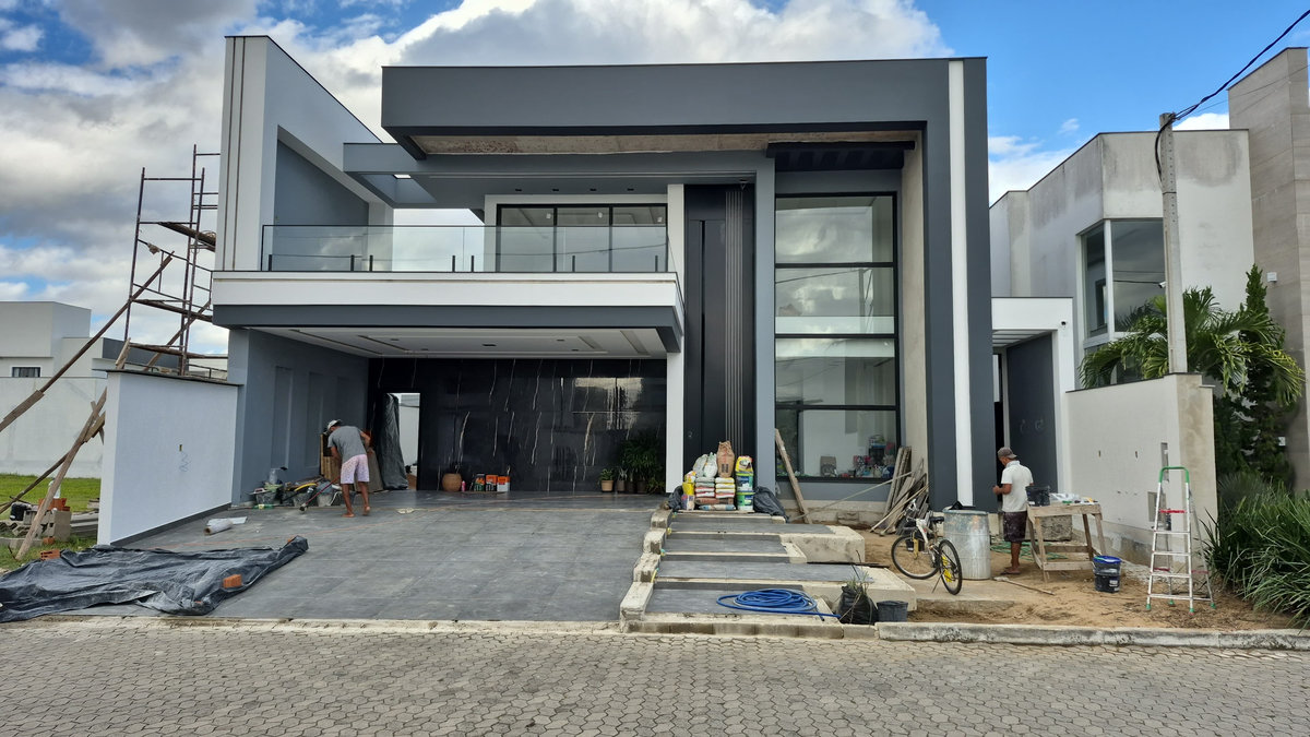 Projeto de 305 m² localizado no Parthenon Park Residence, em Campos dos Goytacazes, que combina linhas contemporâneas, volumetria marcante e uma paleta sofisticada entre preto, madeira e pedra. A fachada imponente e a iluminação cênica destacam a identidade arquitetônica da casa.