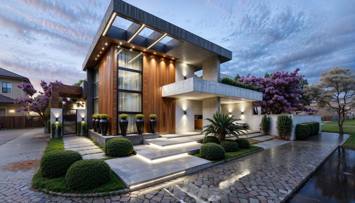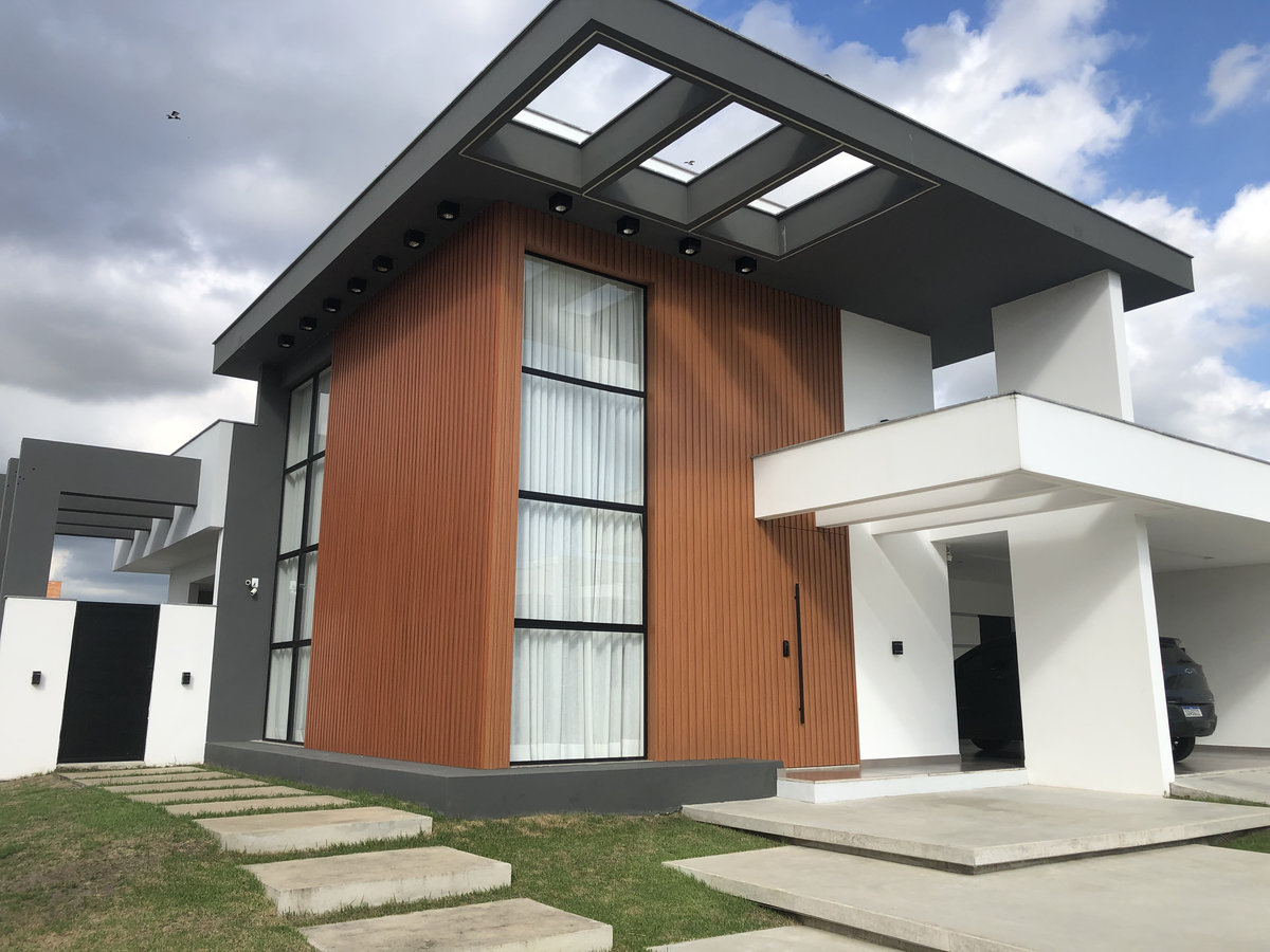Uma casa que acolhe ainda antes da porta se abrir. Seus volumes em concreto e madeira dialogam com o céu, enquanto a luz percorre cada linha como se desenhasse o movimento do dia. O paisagismo envolve a fachada com suavidade, equilibrando força e delicadeza. Em 200 m², a residência se revela como um refúgio contemporâneo, onde arquitetura, natureza e aconchego se encontram em harmonia. Uma obra concluída, mas que continua viva em cada gesto de quem a habita.